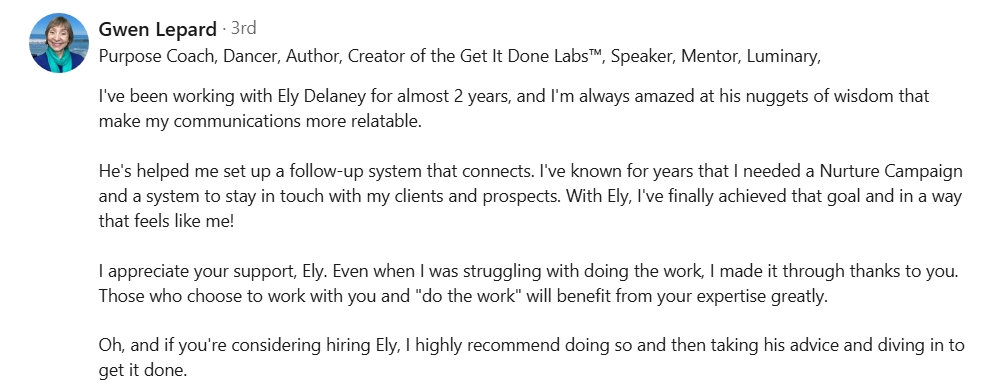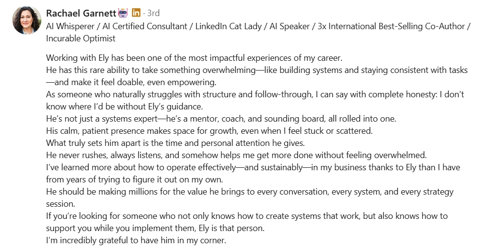 "Testimonials shown are real experiences from clients, presentation attendees, and people that have had personal experiences using the strategies and processes I've shared with them. Their results are not typical and your experience will vary based upon your effort, education, business model, and market forces beyond our control. We make no earnings claims or return on investment claims, and you may not make your money back."